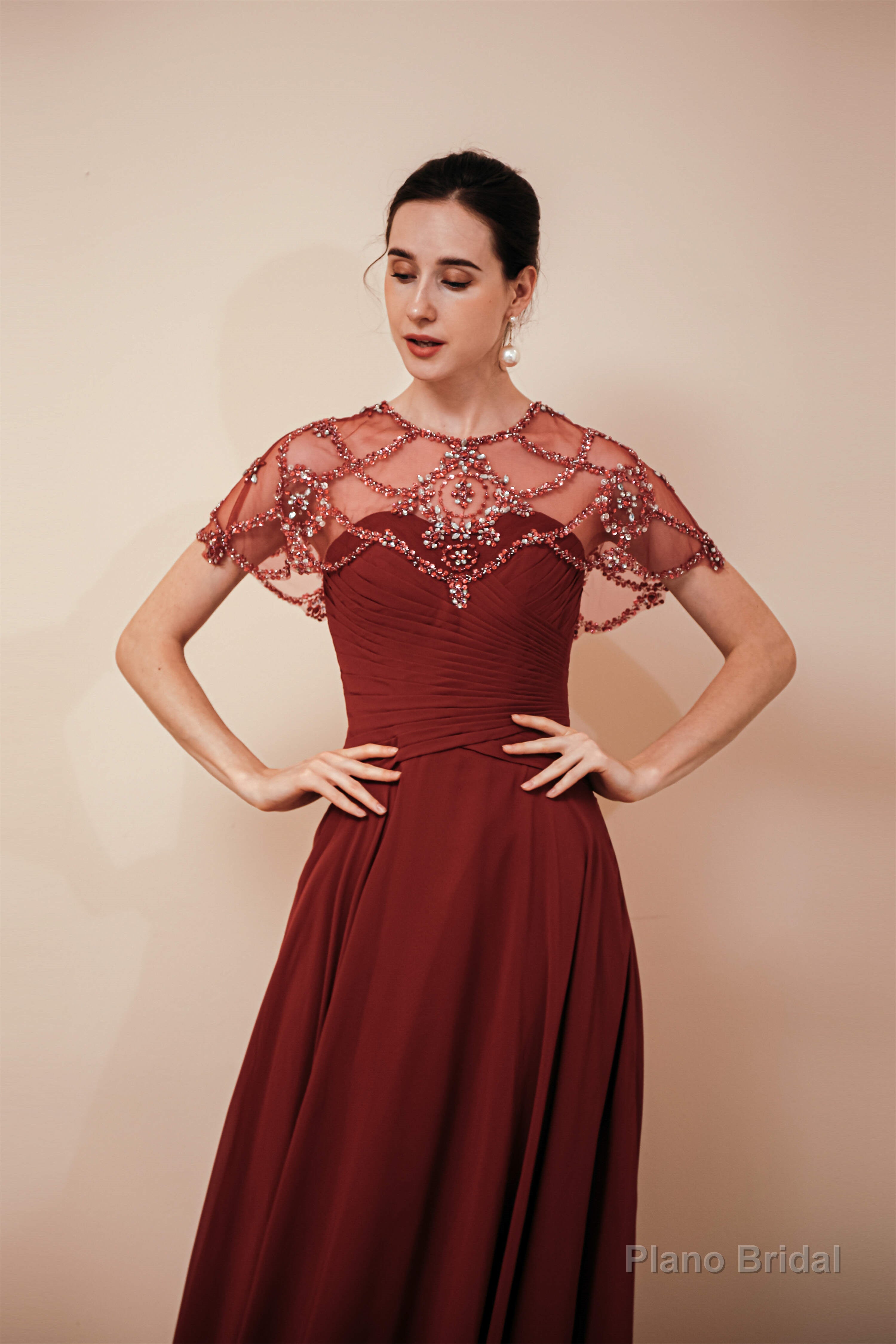 A Line Chiffon Beading Long Zipper Back Mother of the Bride Dresses