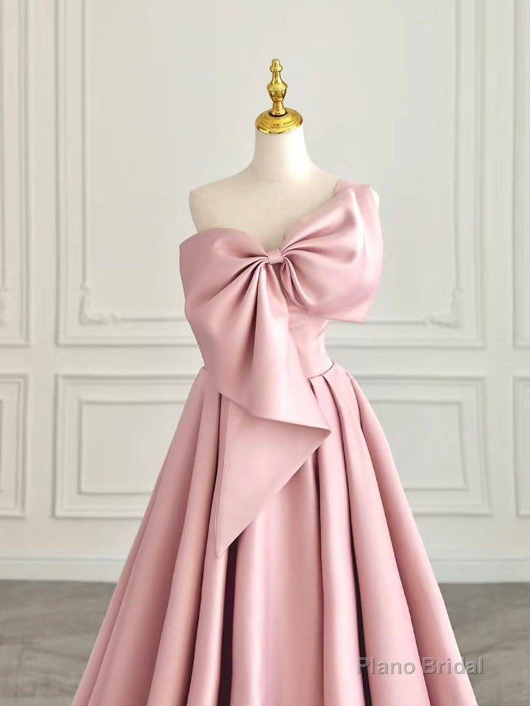 A-Line Sweetheart Neck Satin Pink Long Prom Dress, Pink Long Evening Dress