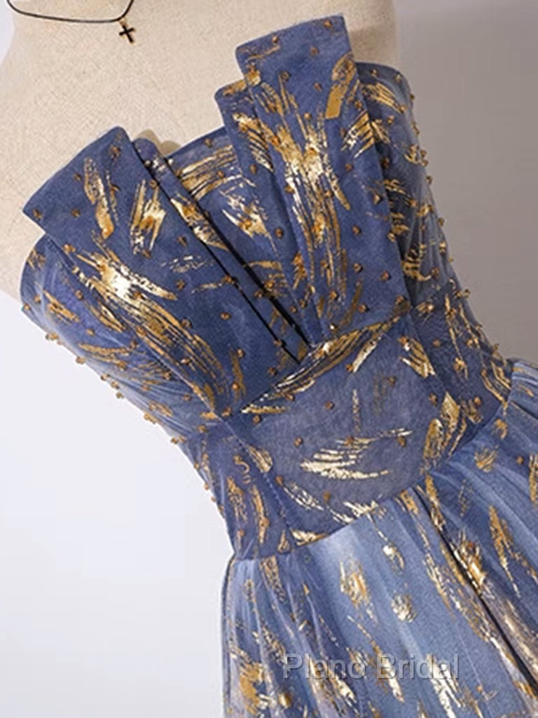 A-Line Tulle Lace Blue Short Formal Prom Dresses, Cute Blue Homecoming Dresses