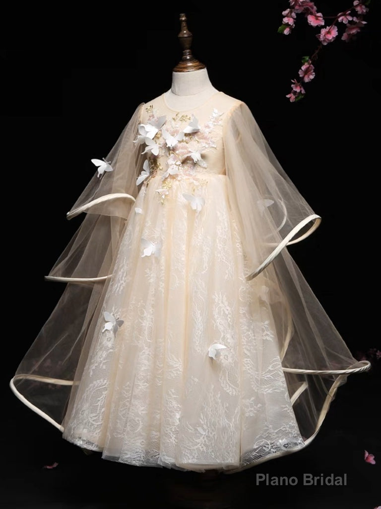 A-Line Tulle Lace Butterfly Champagne Flower Girl Dress