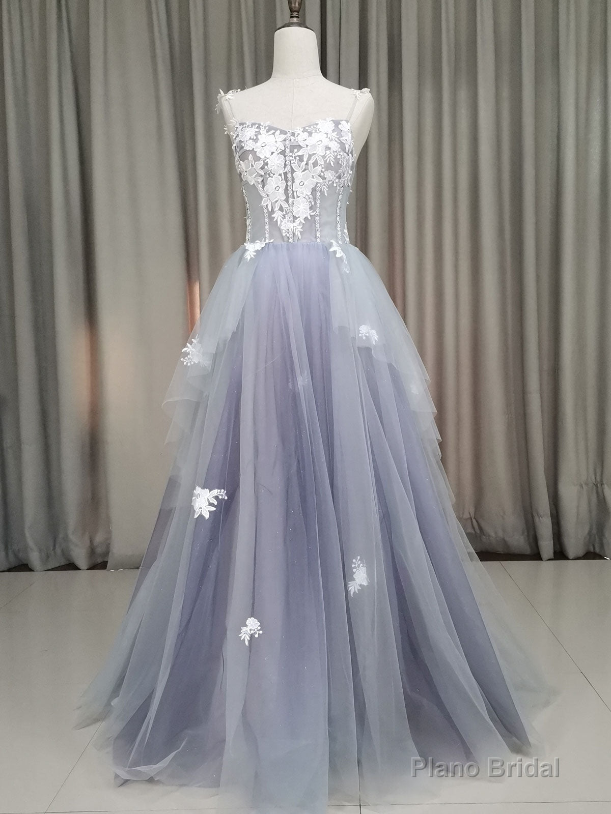 A line Tulle Lace Long Formal Dress, Lace Tulle Prom Dress