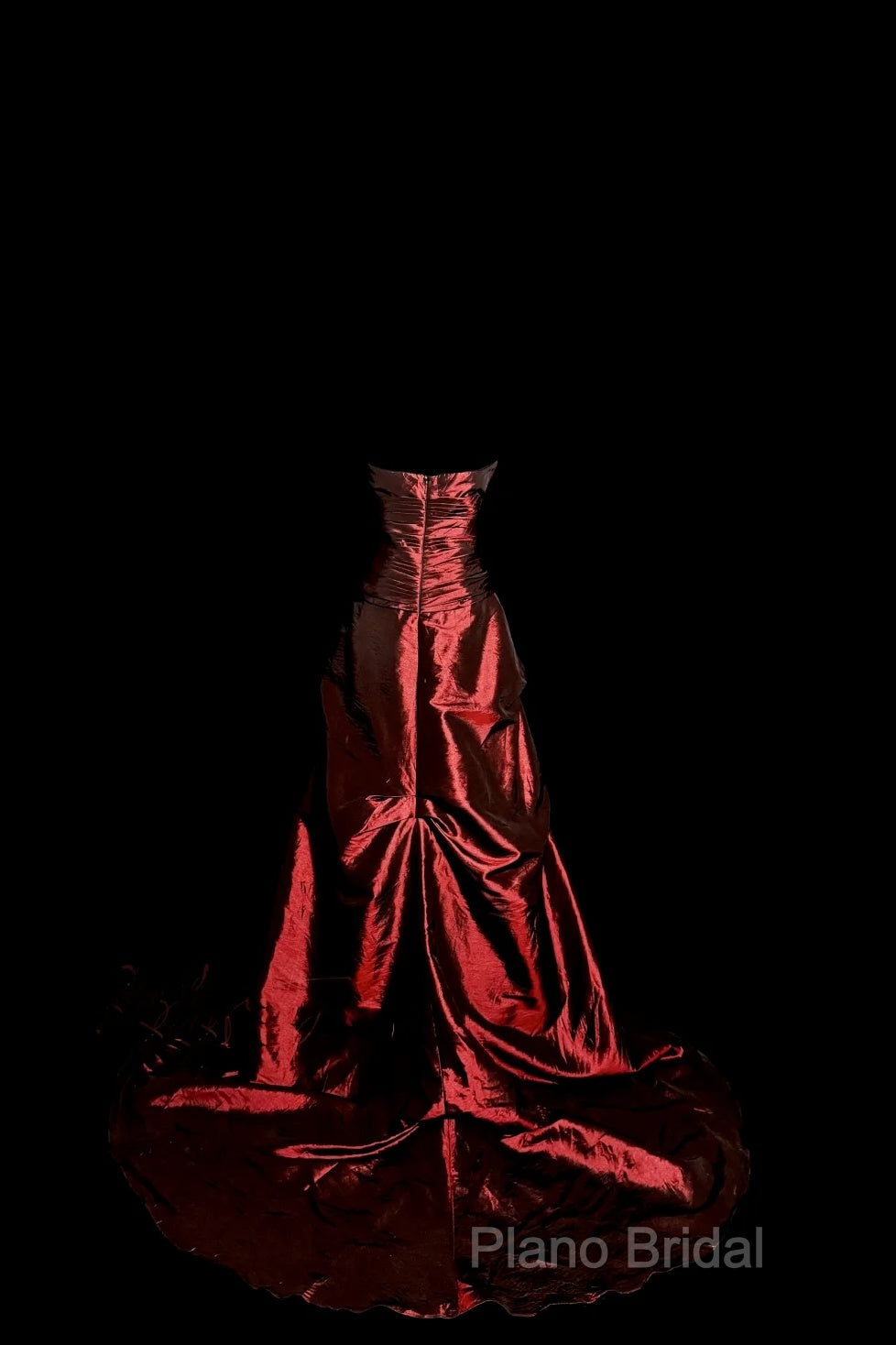Aesthetic Ball Gown Strapless Burgundy Taffeta Formal Prom Dresses Ruffle Long Party Dresses