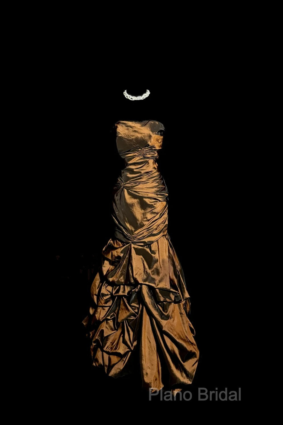 Aesthetic Mermaid Strapless Neckline Brown Taffeta Formal Prom Dresses Ruffle Long Party Dresses
