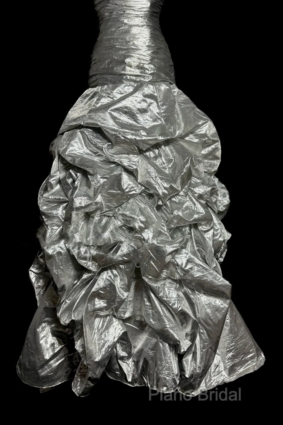 Aesthetic Mermaid Sweetheart Neckline Gray Taffeta Formal Prom Dresses Ruffle Long Party Dresses