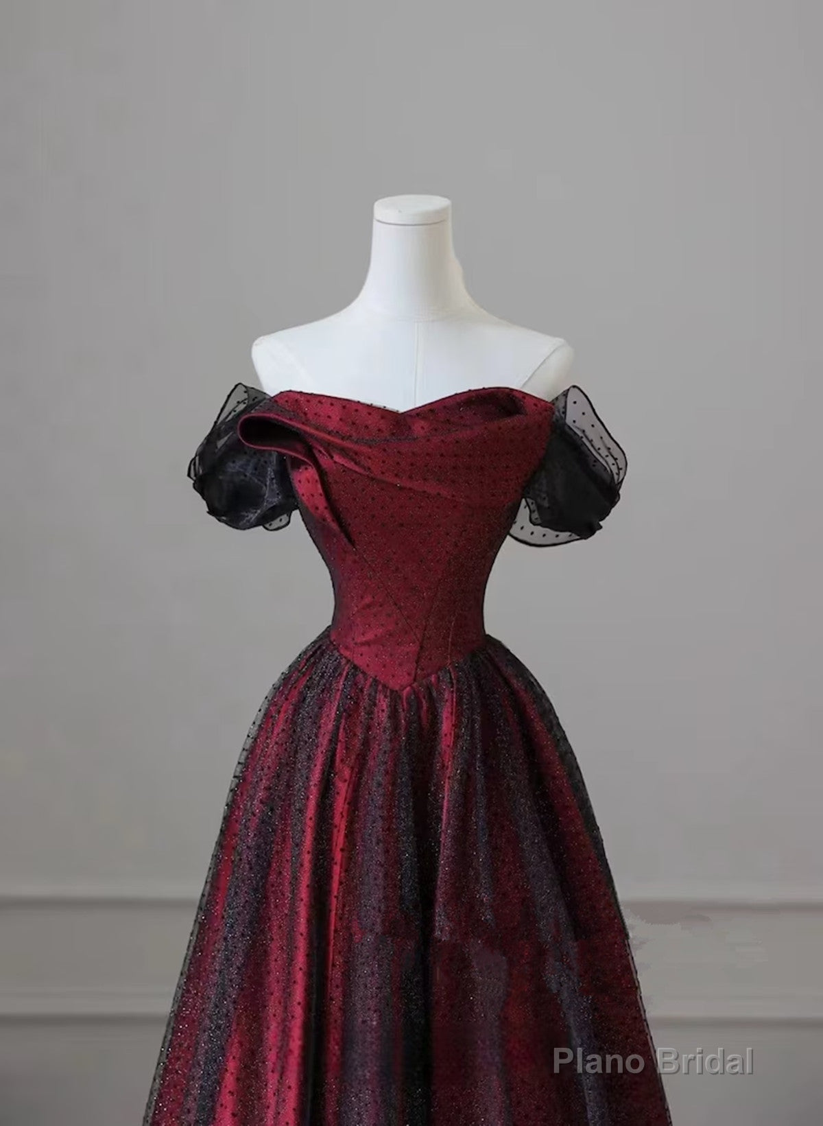 Black and Red Long Party Dress, Off Shoulder Tulle A-line Prom Dress