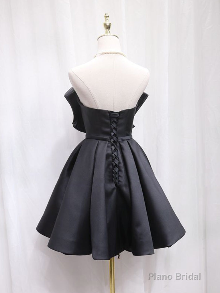 Black Sweetheart Neck Satin Short Prom Dress, Black Homecoming Dress
