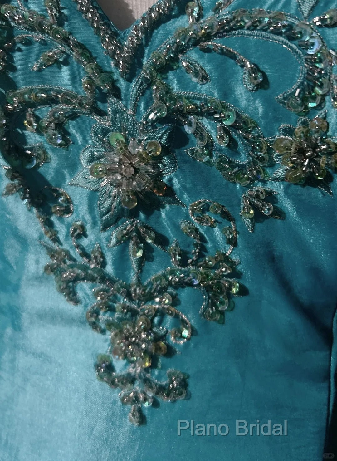 Blue A-Line Spaghetti Straps Satin Beaded Long Formal Prom Dresses Sweetheart Neck Applique Graduation Formal Prom Dresses