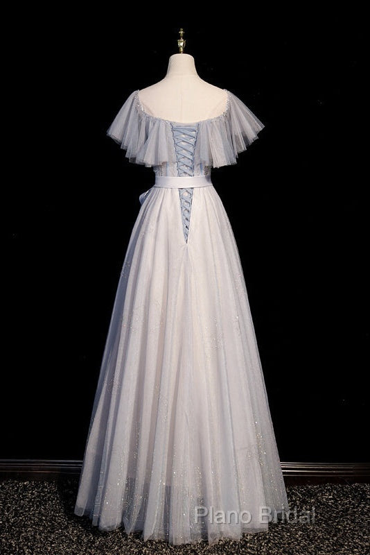 Blue And Pink Beaded Tulle Lovely A-Line Long Party Dresses, Tulle Formal Dresses Formal Prom Dresses