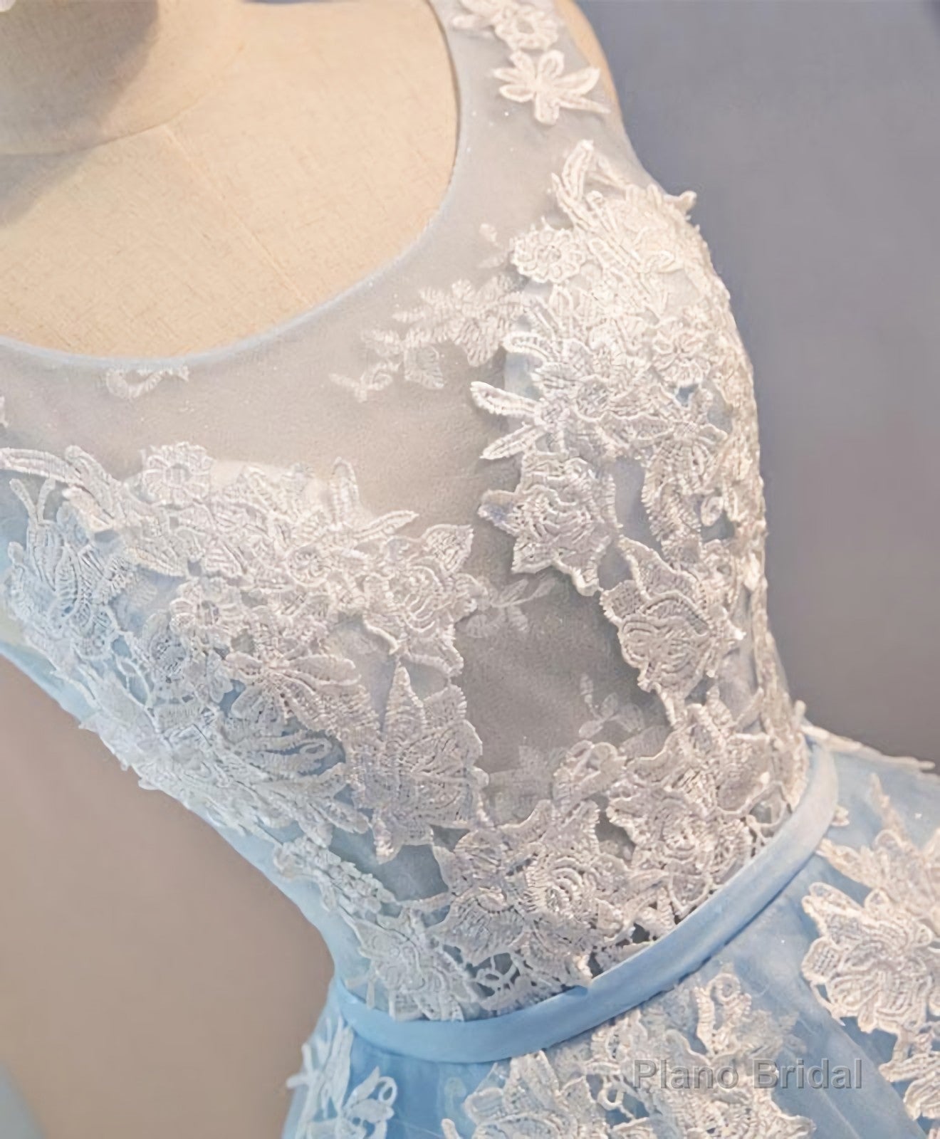 Blue V Neck Tulle Short Prom Dress, Blue Homecoming Dress