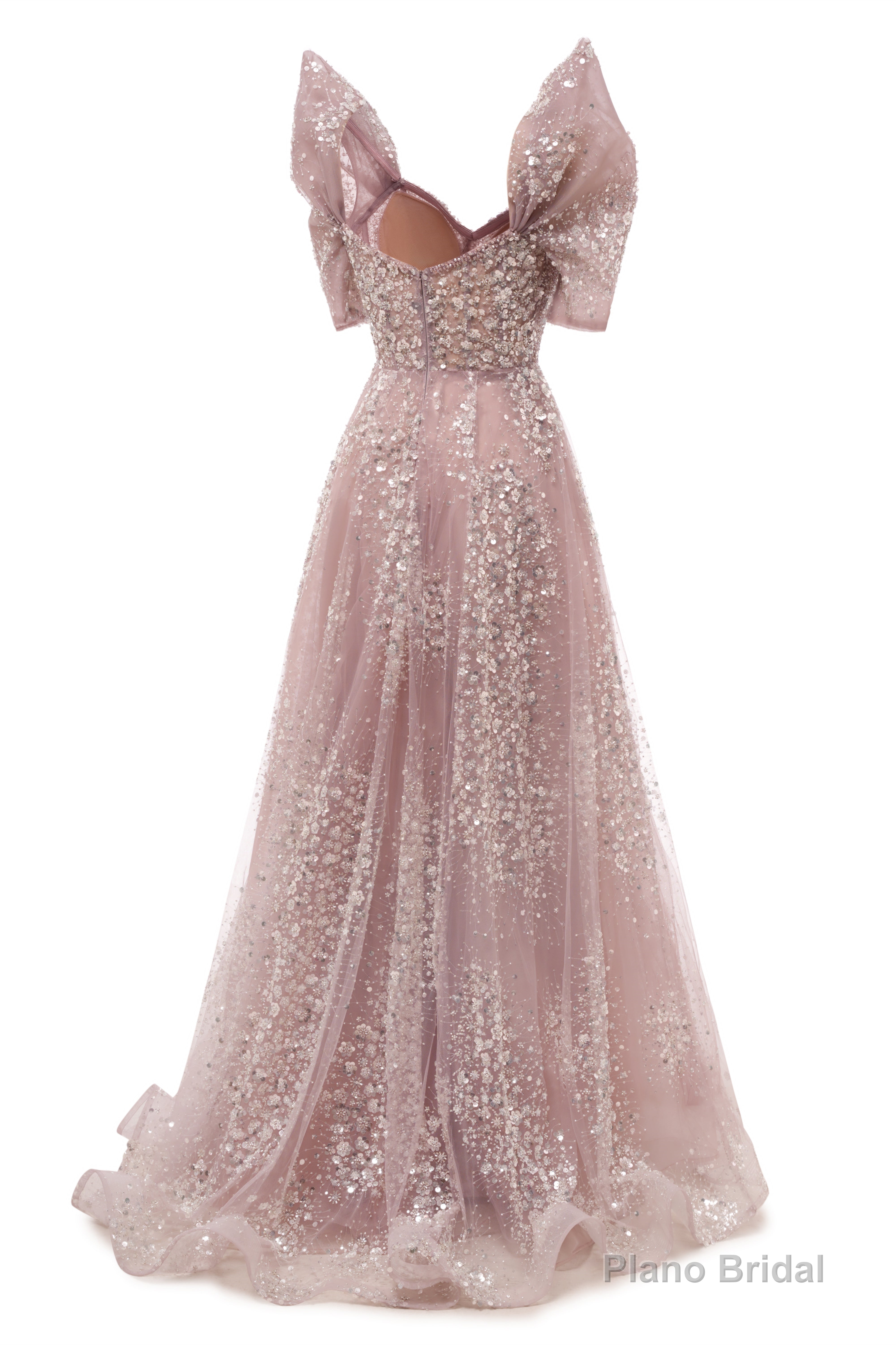 Blushing Pink Lace Crystal Sequin Long Prom Dresses Luxury Evening Gowns Vintage Party Dresses
