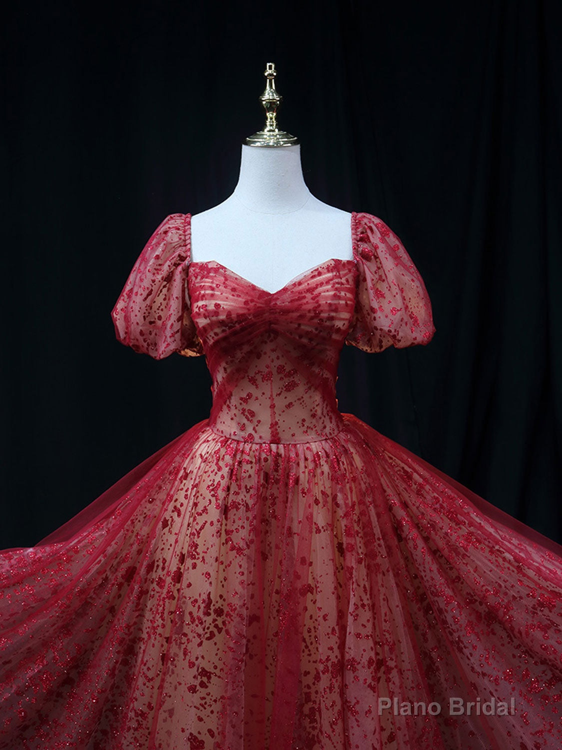 Burgundy A line Tulle Sequin Long Prom Dress Burgundy Tulle Formal Evening Dress