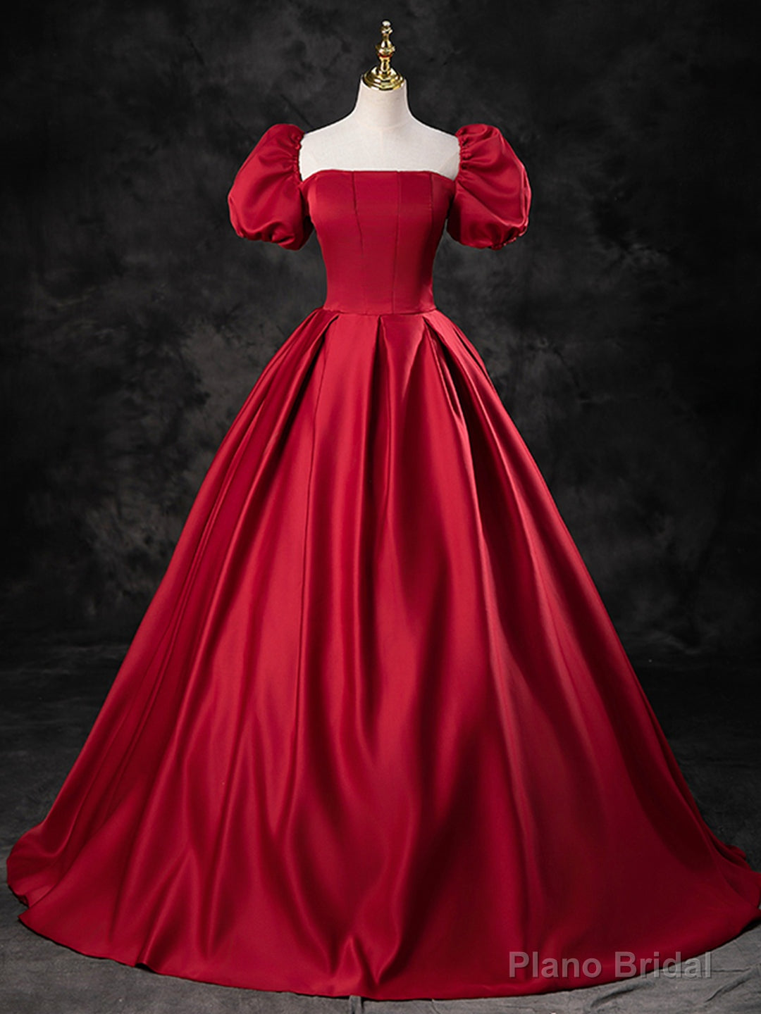 Burgundy Satin Off the Shoulder Formal Dress, A-Line Burgundy Evening Dress