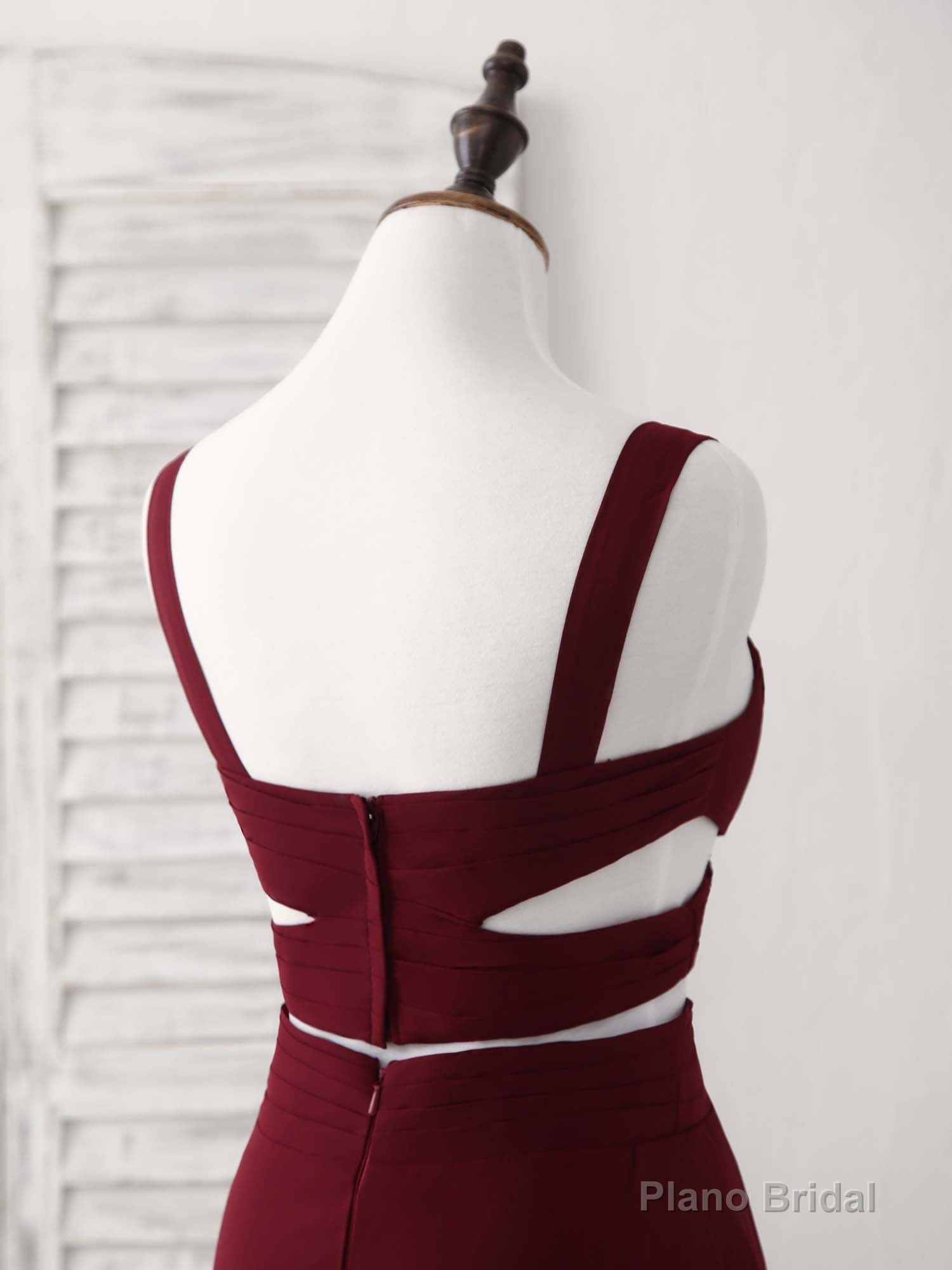 Burgundy Two Pieces Chiffon Long Prom Dress, Evening Dress