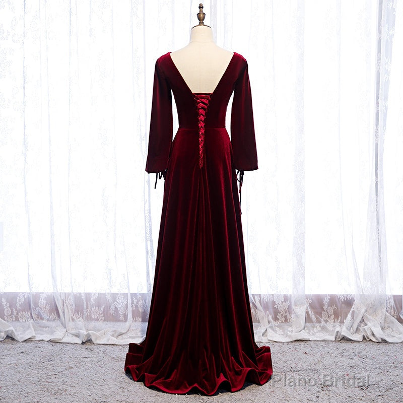 Color:Burgundy,Hemline:Floor Length,Back Details:Lace-up