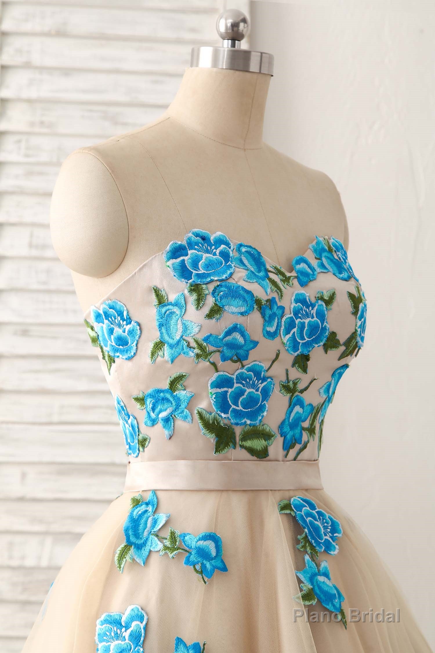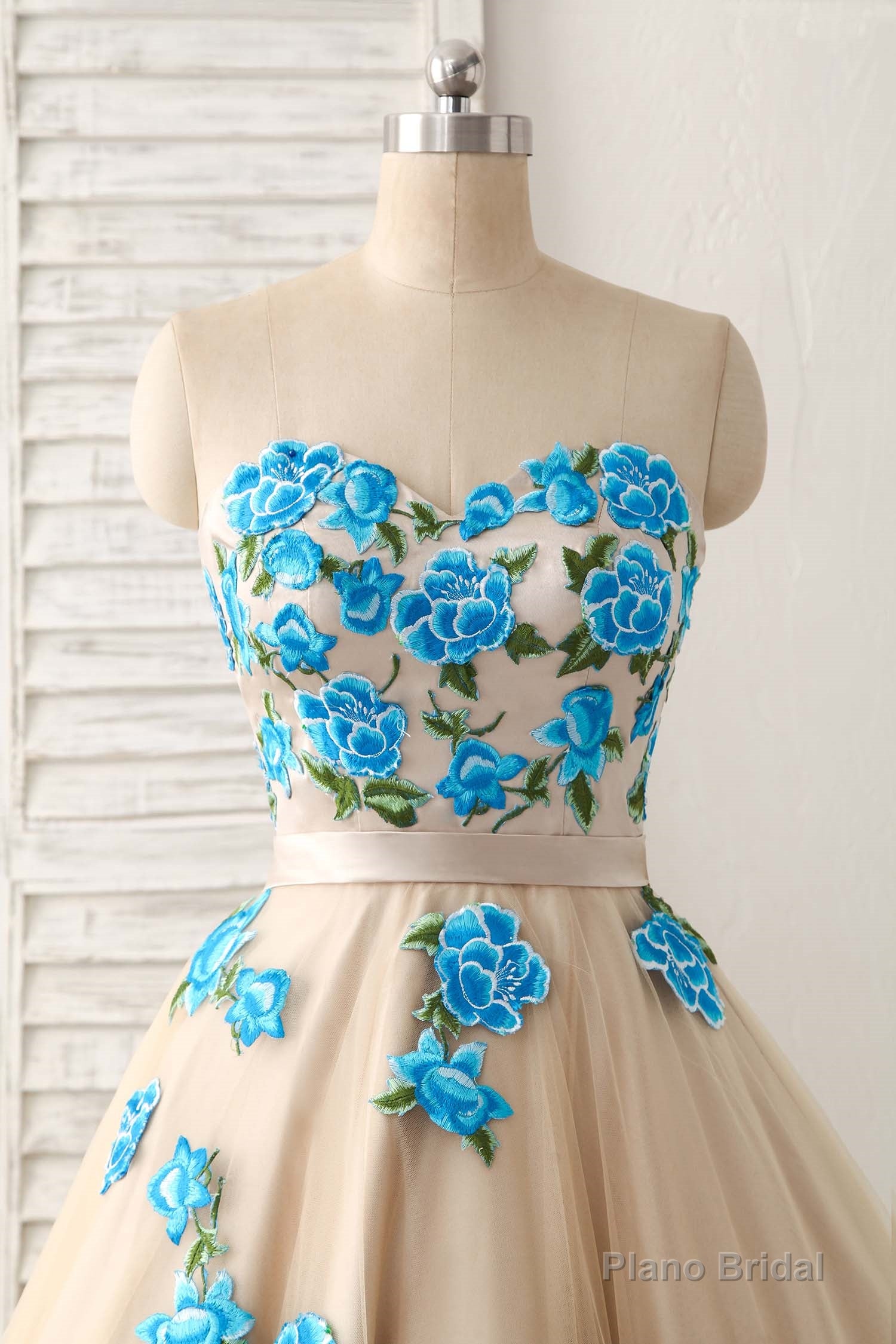 Champagne Tulle Lace Applique Long Prom Dress, Champagne Evening Dress