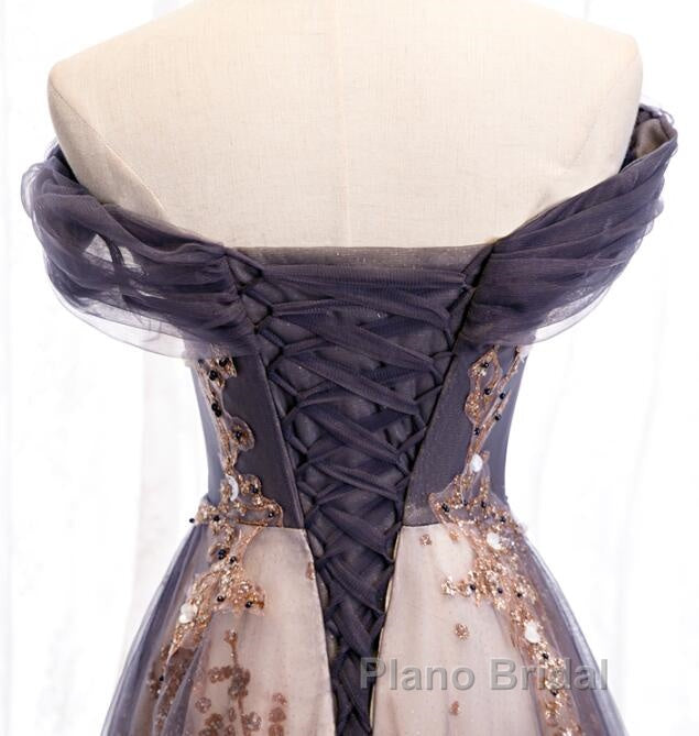 Charming A-Line Tulle Long Off Shoulder Party Dresses, Formal Prom Dresses
