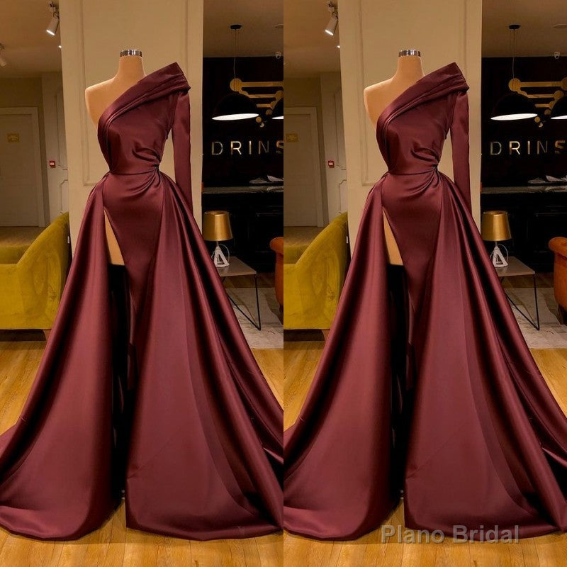 Chic Long Sleeve One Sleeve Evening Dress With Split On Sale