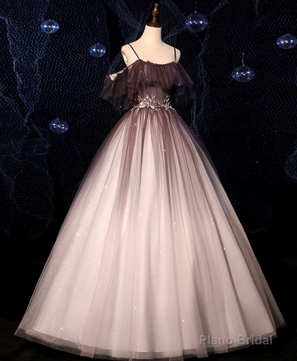 Coffee One Shoulder Tulle Long Prom Gown, Coffee Tulle Formal Dress