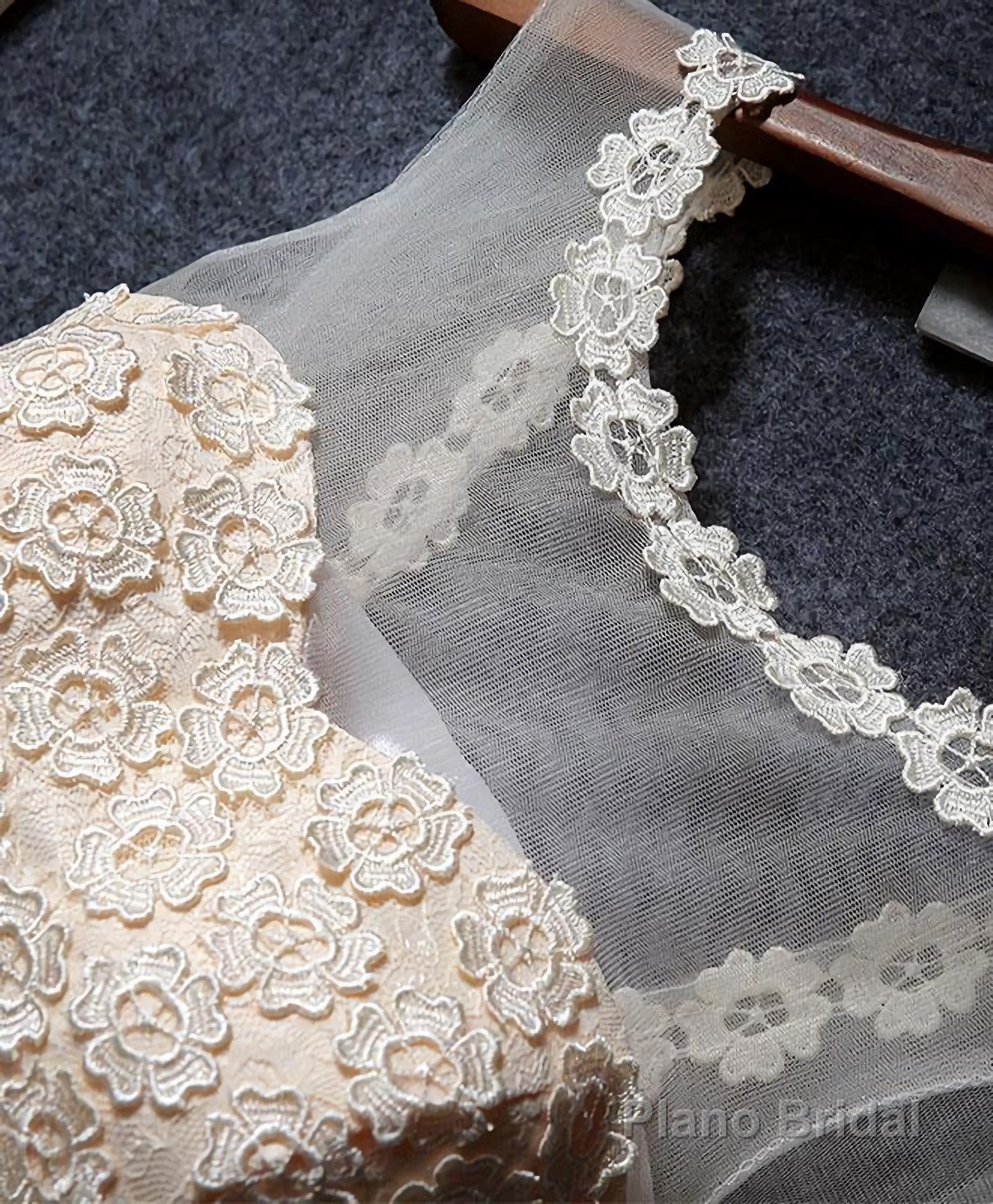 Cute Champagne A Line Lace Short Prom Dress, Homecoming Dress