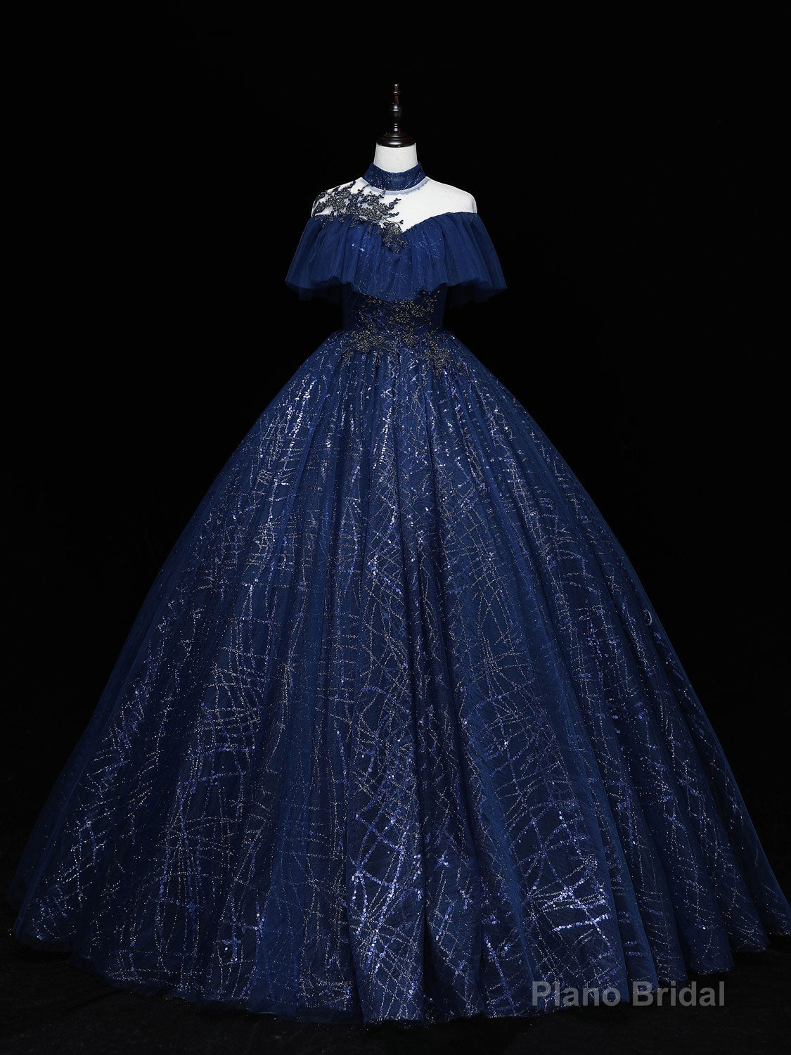 Dark Blue Long Prom Dress, Blue Tulle Formal Gown Graduation Dresses