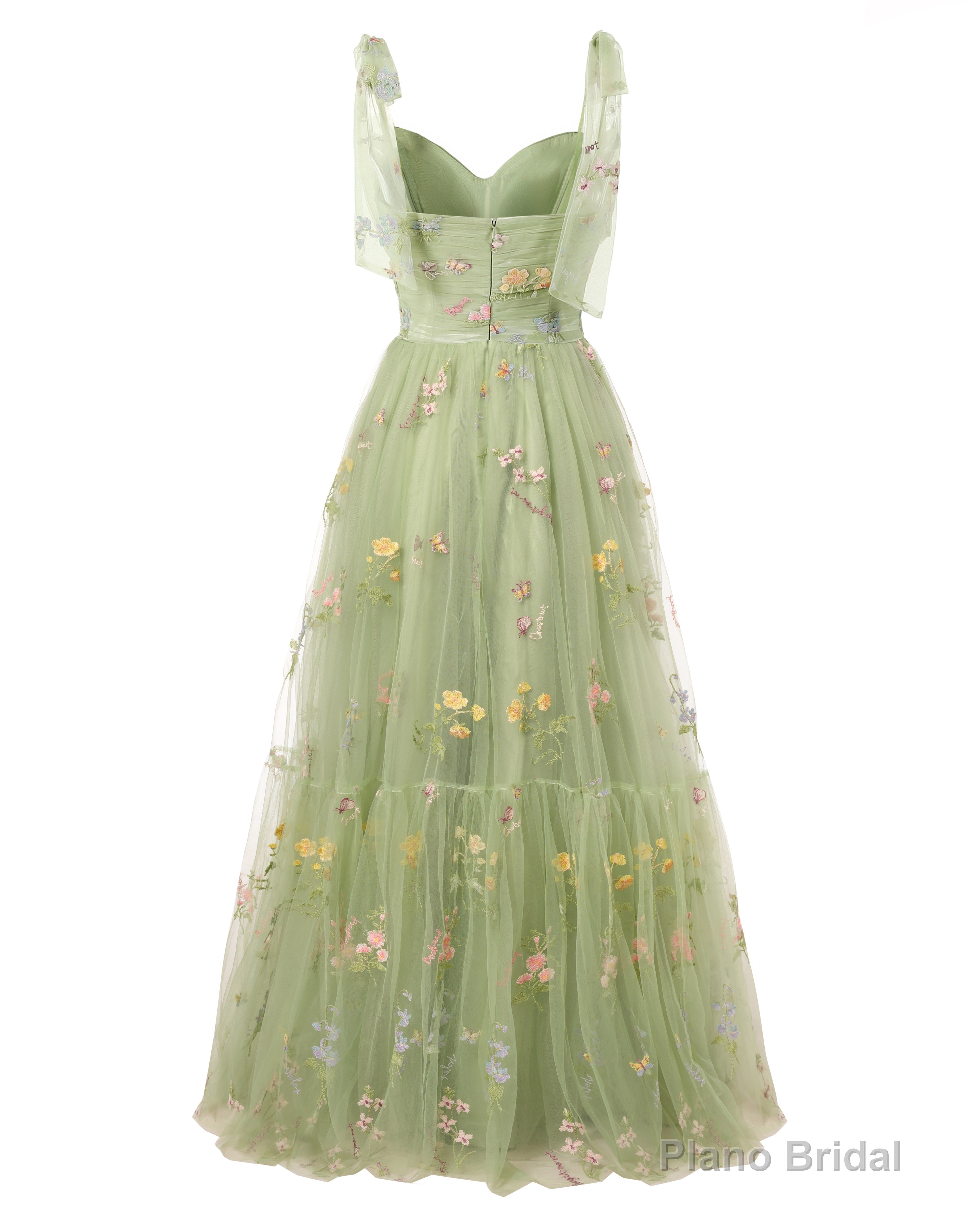 Elegant Embroidery Peacock Prom Dresses Sweetheart Spaghetti Straps A Line Party Dress Long Simple Formal Dress