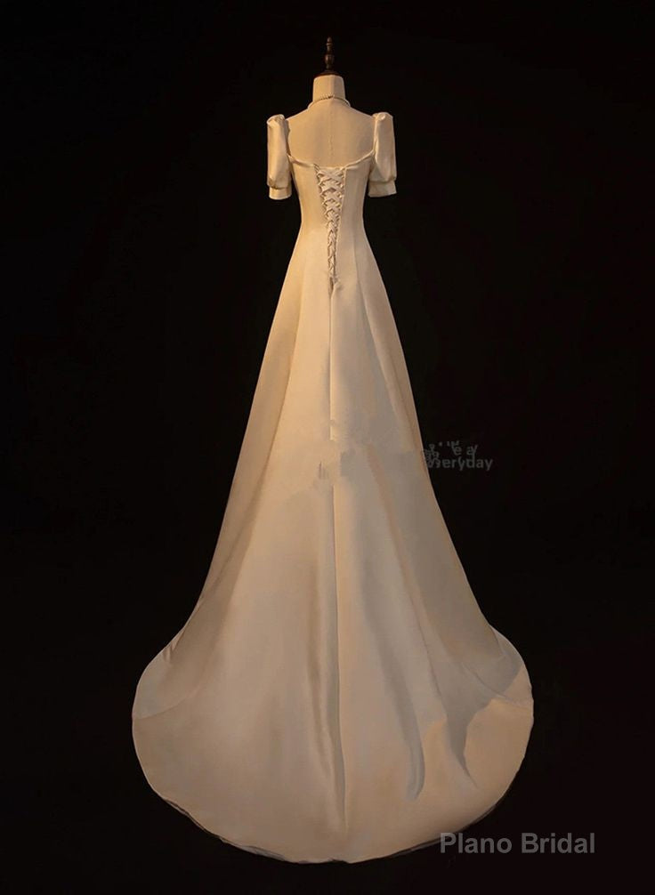 Elegant White Satin A-line Wedding Party Dress Long Prom Dress Evening Gown