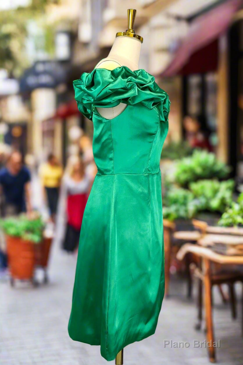 Emerald Green Sheath/Column Off-the-Shoulder Sleeveless Satin Short/Mini Homecoming Dress With Ruffles