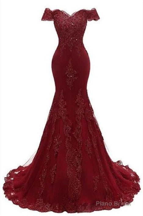 Gorgeous Burgundy Prom Party Gowns| Mermaid Lace Evening Gowns