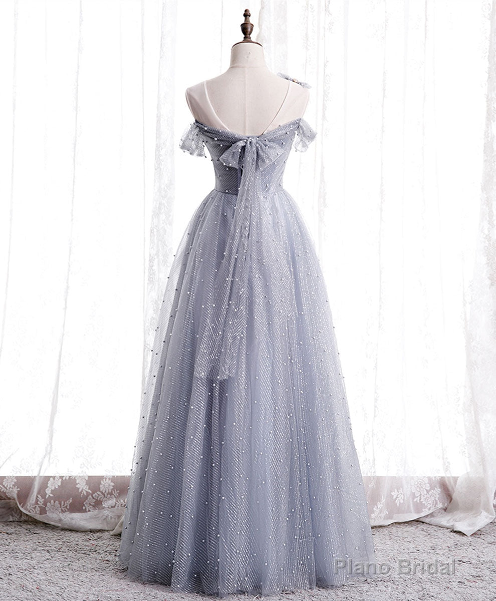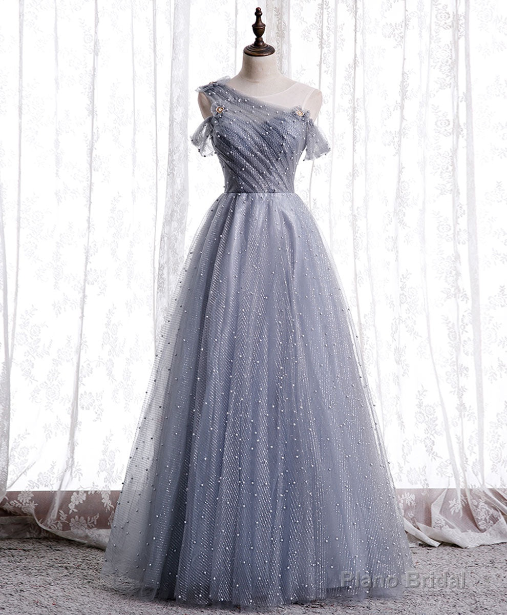 Gray Aline Long Prom Dress, One Shoulder Gray Formal Party Dresses