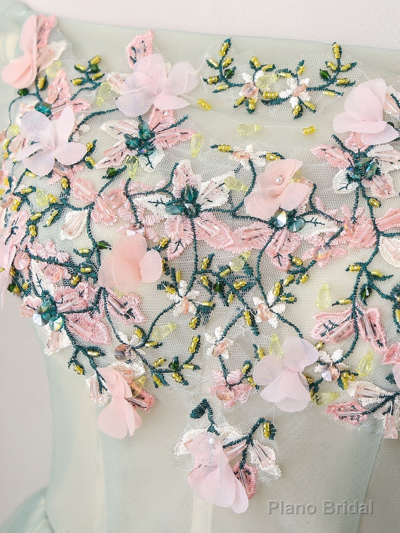 Green Tulle Lace Applique Short Prom Dress, Green Homecoming Dress
