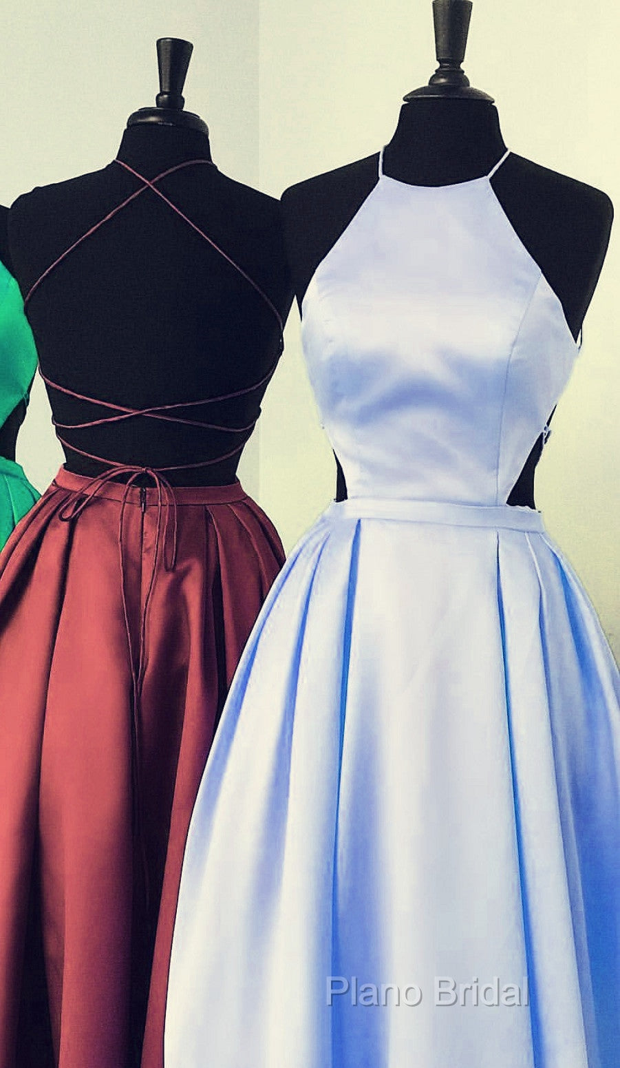 Halter Formal Prom Long Satin Gown Dresses Lace Up Back