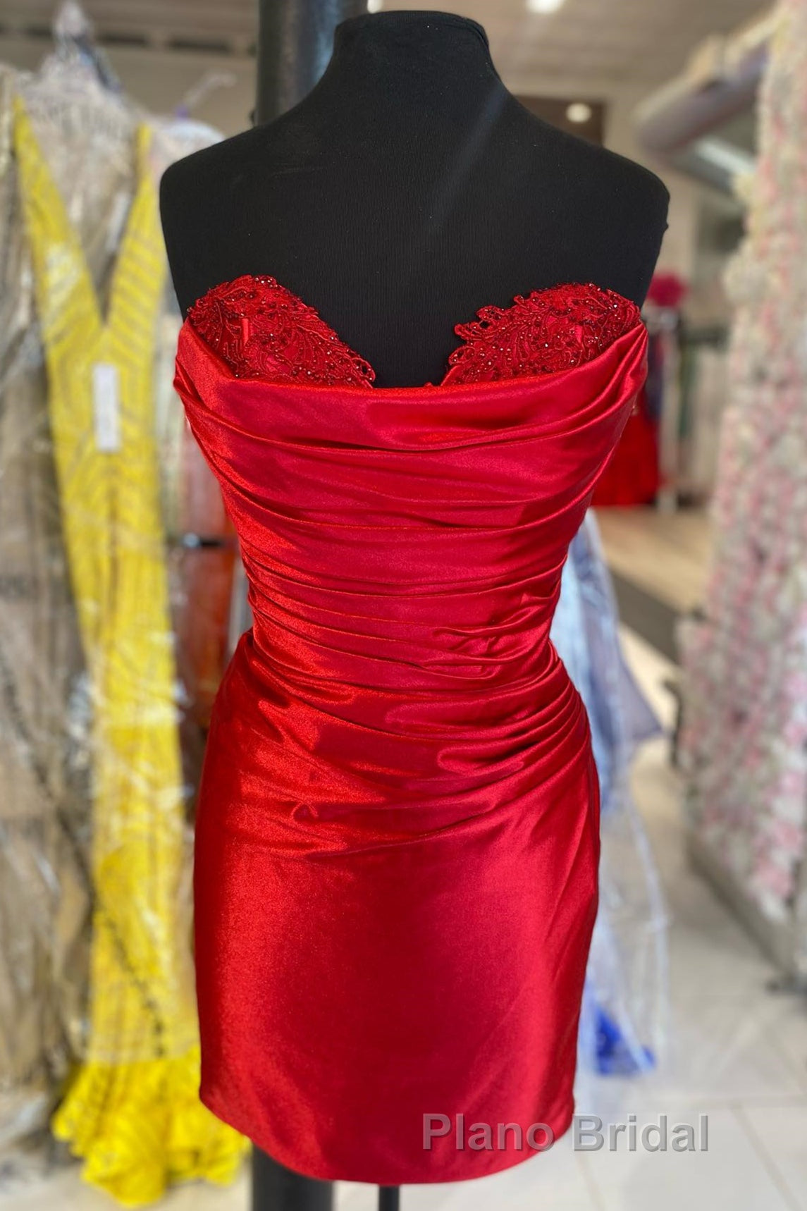 Hunter Green Strapless Beaded Pleated Sheath Homecoming Dresses
