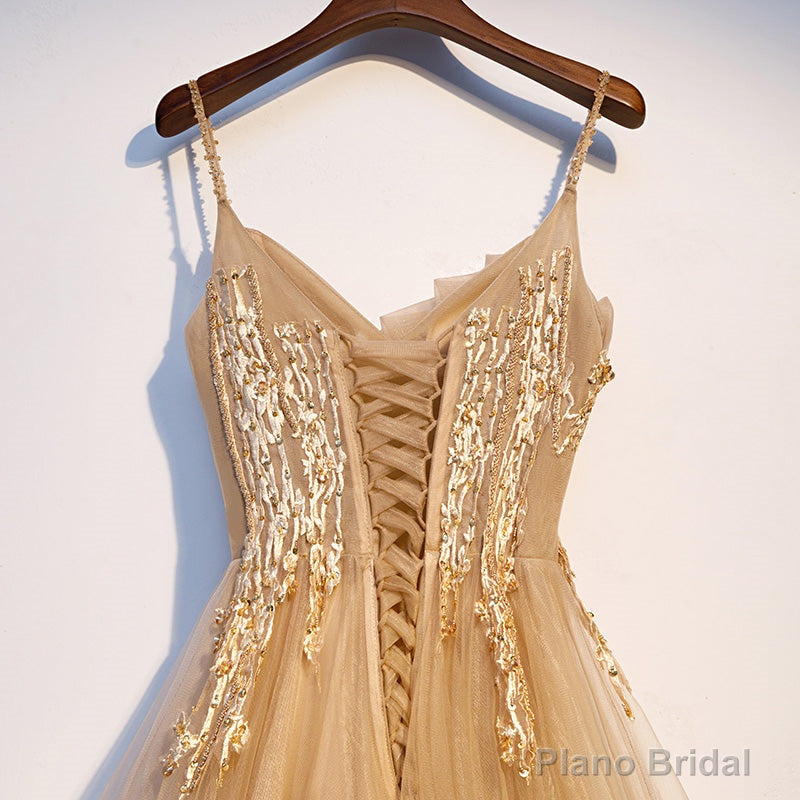 Color:Champagne,Hemline:Floor Length,Back Details:Lace-up