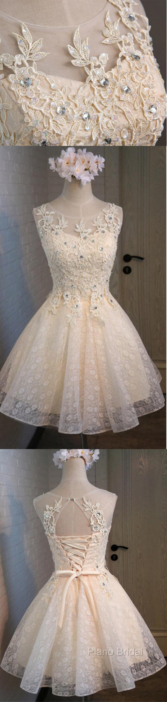 Lovely Vintage Sleeveless Full Floral Prints Appliques Clairvoyant Outfit Lace Up Back Homecoming Dresses