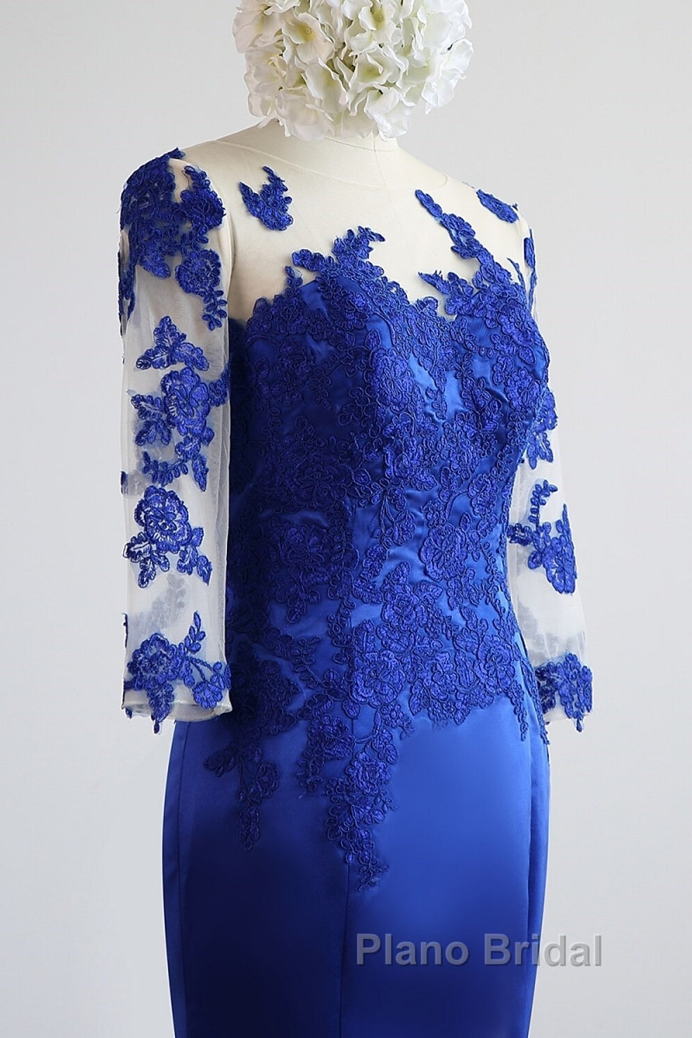 Mermaid / Trumpet Evening Gown Elegant Dresses Formal Floor Length Half Sleeve Illusion Neck Satin With Pleats