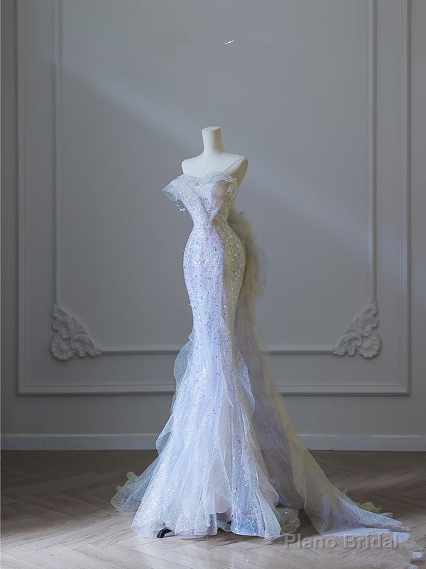 Modest Mermaid Strapless Tulle Flowers Evening Dress Long Prom Dresses