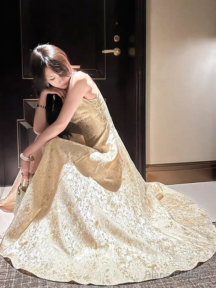 Pretty A Line Spaghetti Straps Lace Satin Prom Dresses Evening Gowns