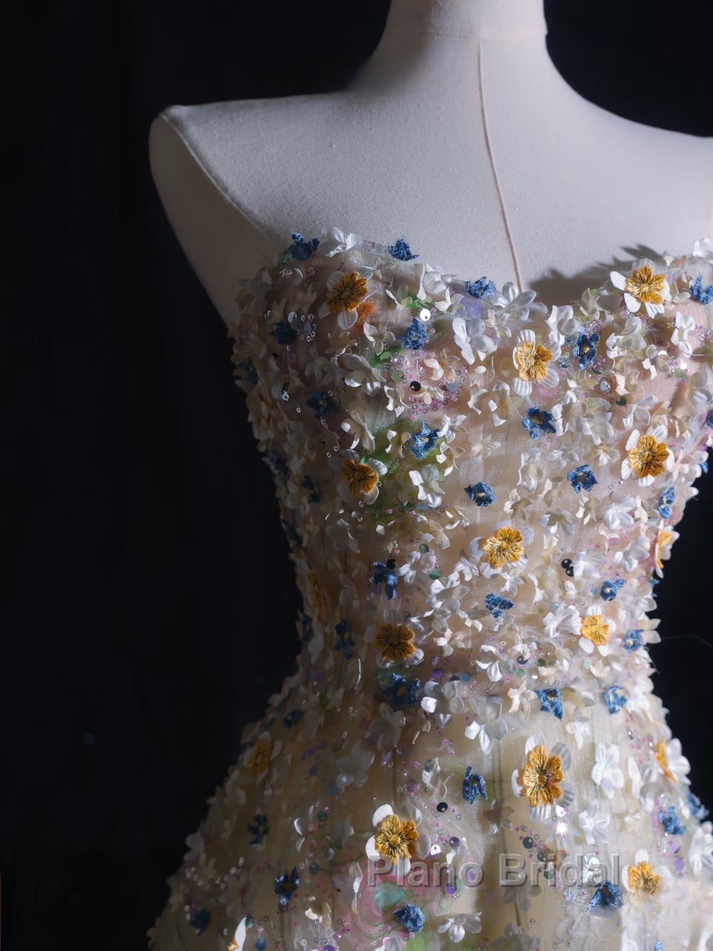 Pretty A Line Sweetheart Tulle Floral Long Formal Prom Dresses Evening Gowns
