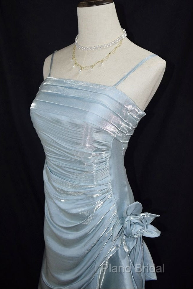 Retro Baby Blue Vintage Floral Dresses Asymmetrical Hem Formal Prom Gown