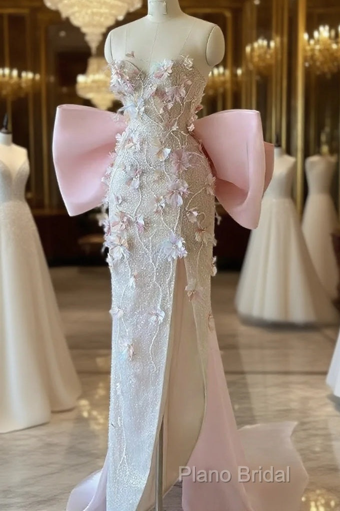 Sexy Mermaid Strapless Pink Sequin Long Floral Formal Prom Dresses Party Dresses