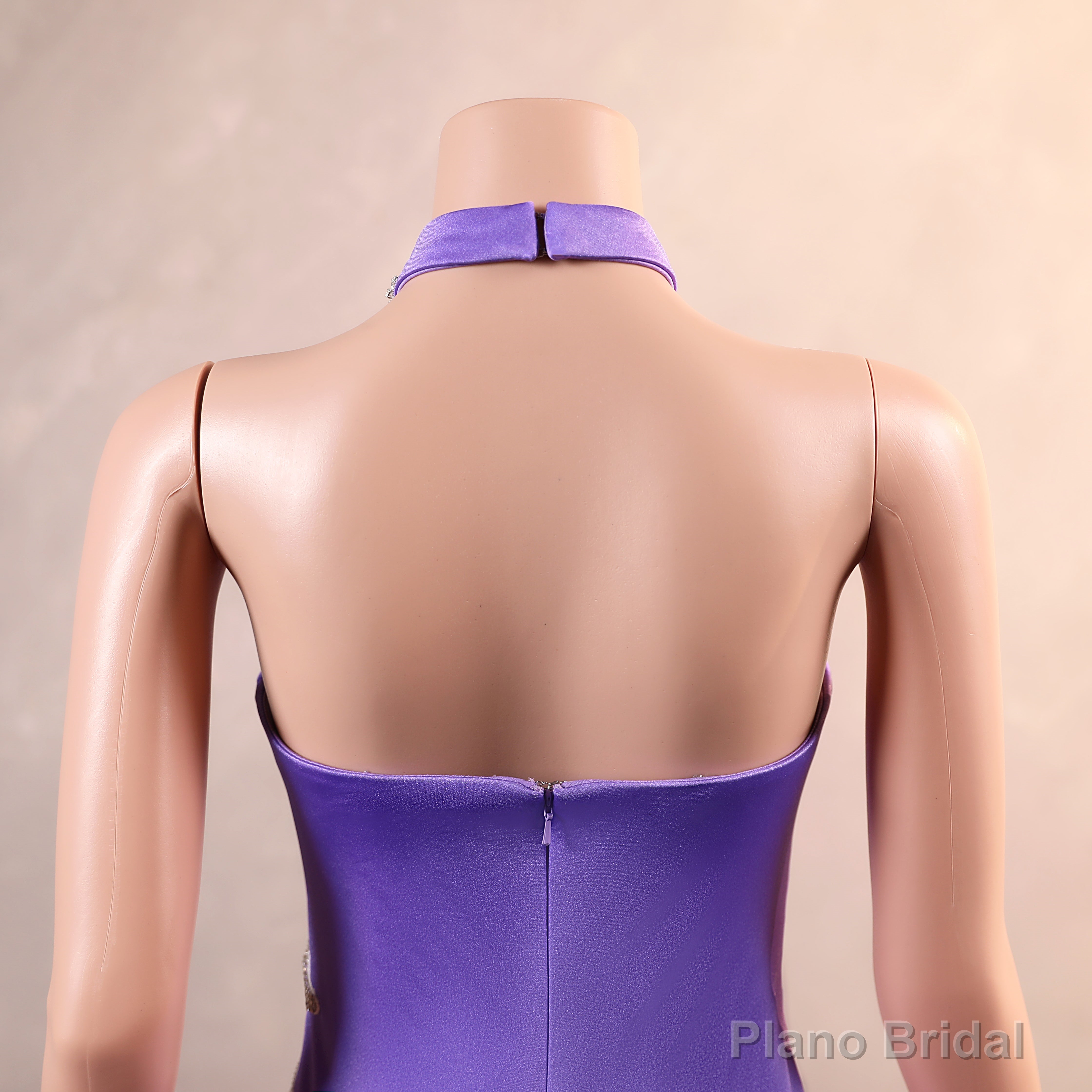 Sexy Purple Mermaid Prom Dresses Heavily Beading Women Evening Dresses Halter Neck
