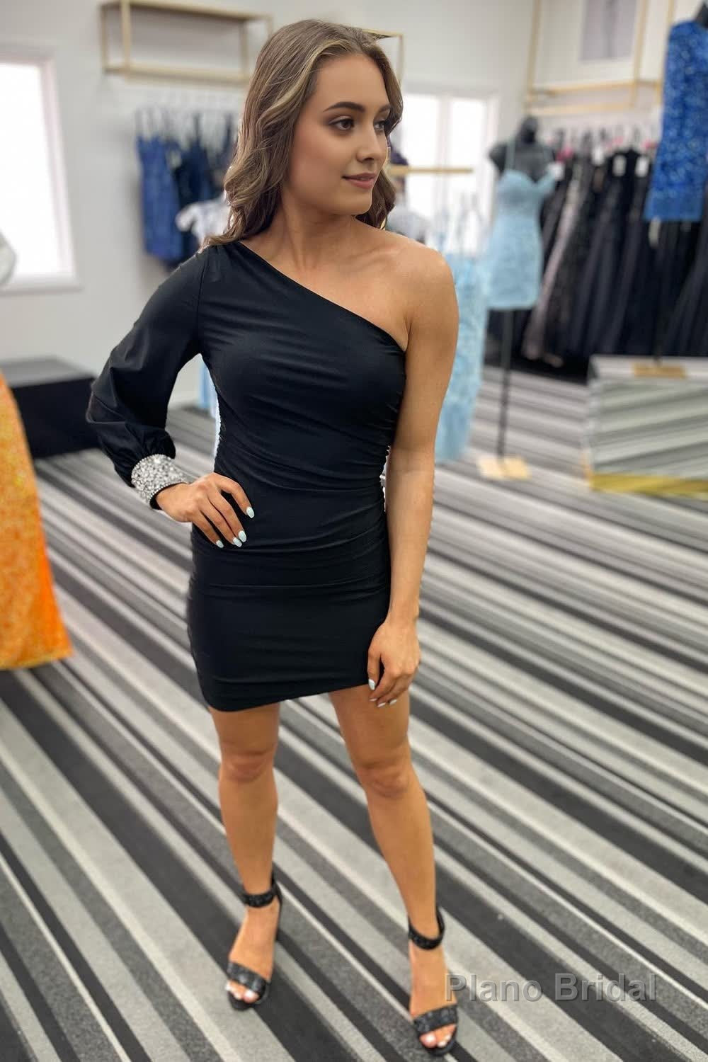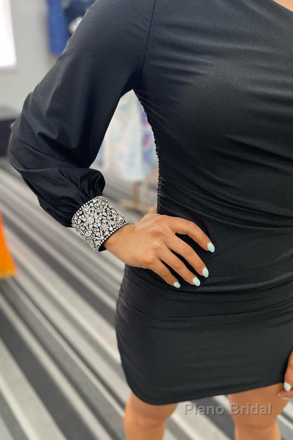 Tight Fuchsia Ruched Homecoming Dress with Sleeves