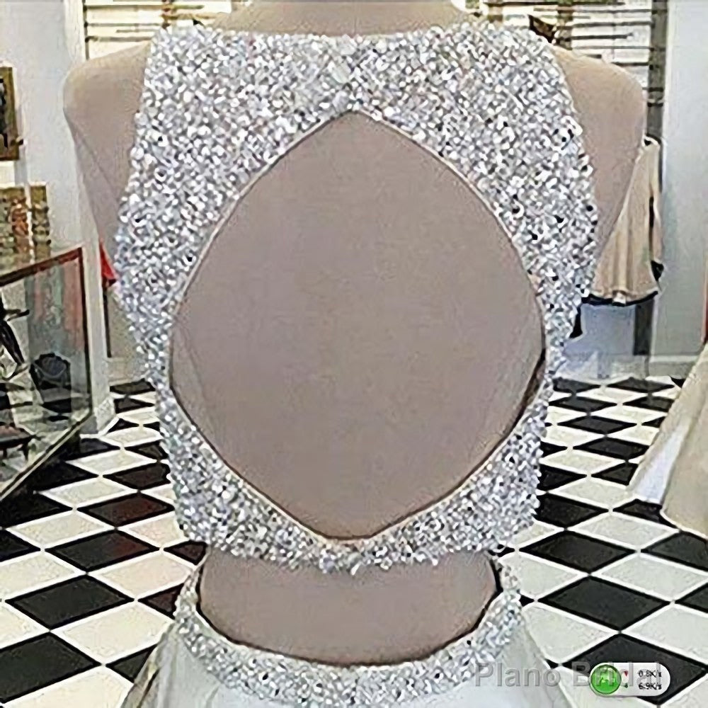 Two Piece High Neck Burgundy Prom Dress, Beaded Open Back Evening Gowns