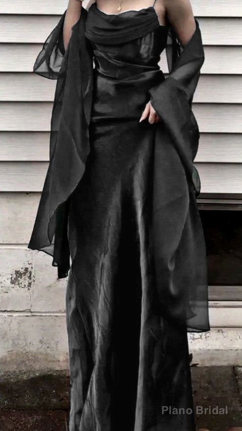 Vintage A Line Spaghetti Straps Green Chiffon Prom Dresses Long Evening Gown Formal Party Dress With Ribbon