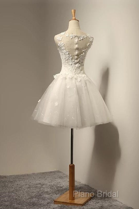 Vintage Cap Sleeves Short Tulle Lace Appliques Wedding Dresses