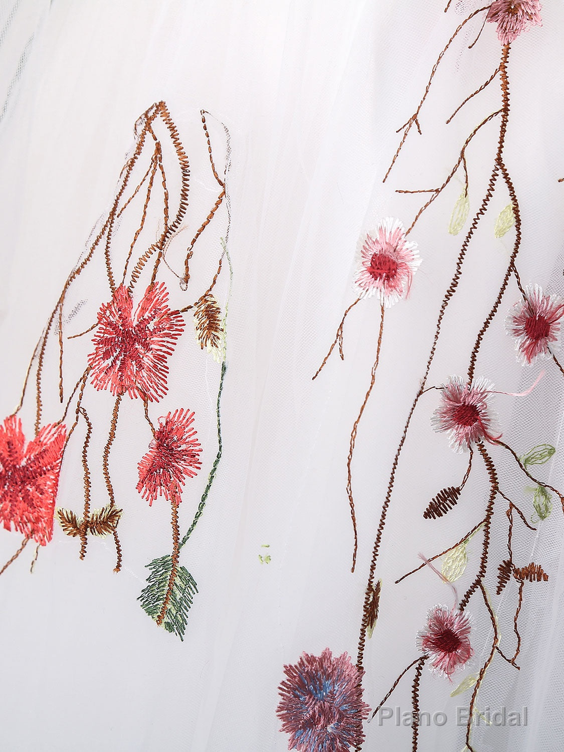 White Sweetheart Tulle Applique Long Prom Dress, White Evening Dress